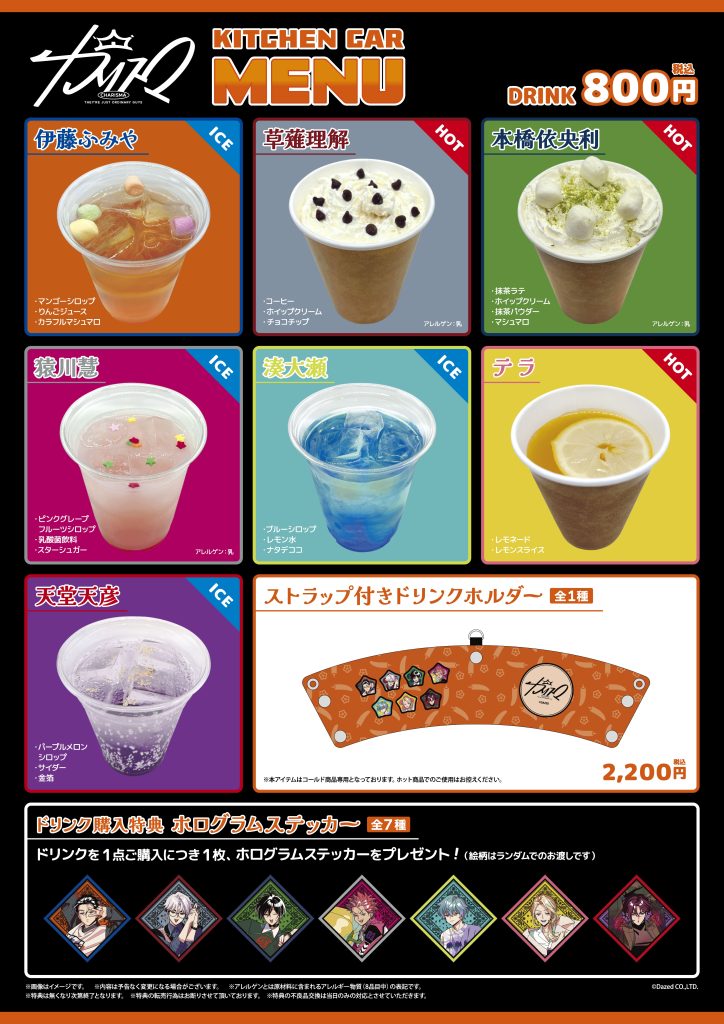 各キャラクターをイメージしたコラボドリンク、ドリンクといっしょに使えるグッズを販売いたします
