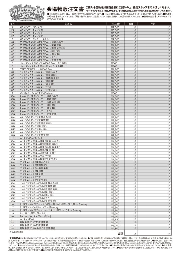 ・ライブ公演で使用できるライト類はカリスマ公式(舞台含む)より発売/特典配布された公式グッズのみとなります。