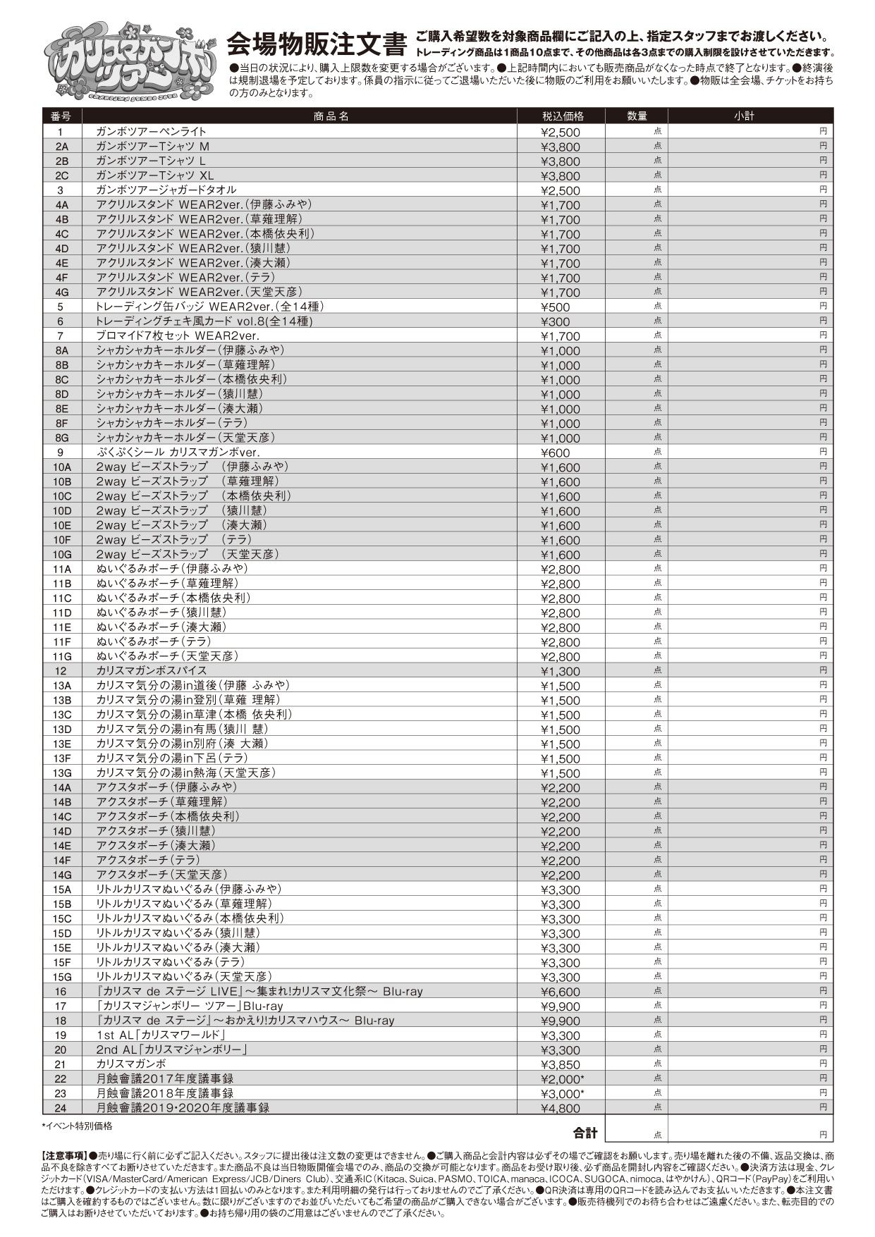 注文書をダウンロード、印刷(A4サイズ推奨)していただき購入数をご記入の上、当日売り場までお持ちください。